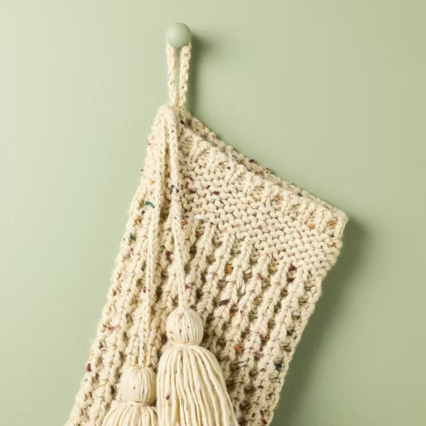 Incluye: Waffle-knit holiday stocking, multicolor confetti fleck accents, 2 tassels hanging from the cuff, hanging loop